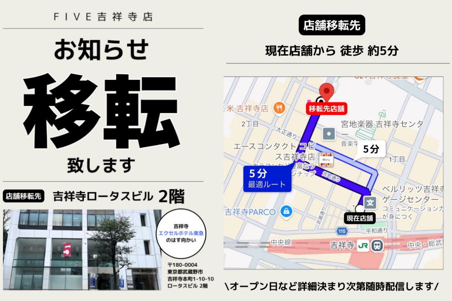 ▶ファイブ吉祥寺店移転のお知らせ
